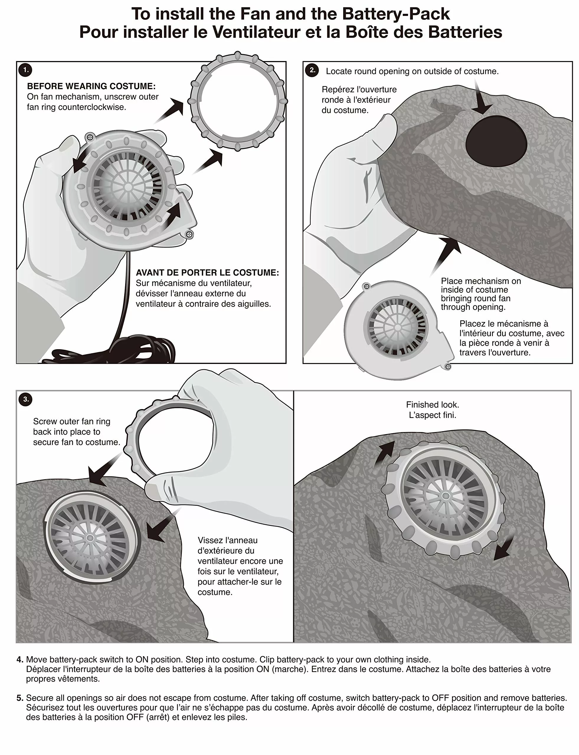 • Battery-Operated Fan: The included battery-operated fan inflates the costume and keeps it inflated during use. Please note that the fan requires 4 AA batteries, which are not included. For optimal performance, do not use rechargeable or nickel-cadmium batteries. Remember to remove batteries from the fan when not in use.