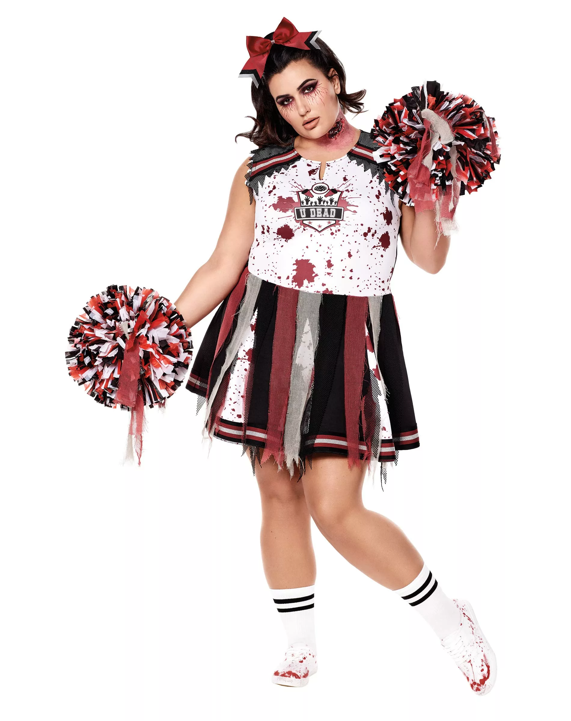 - Complete Zombie Cheerleader Kit: This costume set includes everything you need to transform into a zombie cheerleader: a dress, pom poms, a hair bow, and a latex appliance for that authentic undead look. Get ready to give a performance that’s truly to die for!